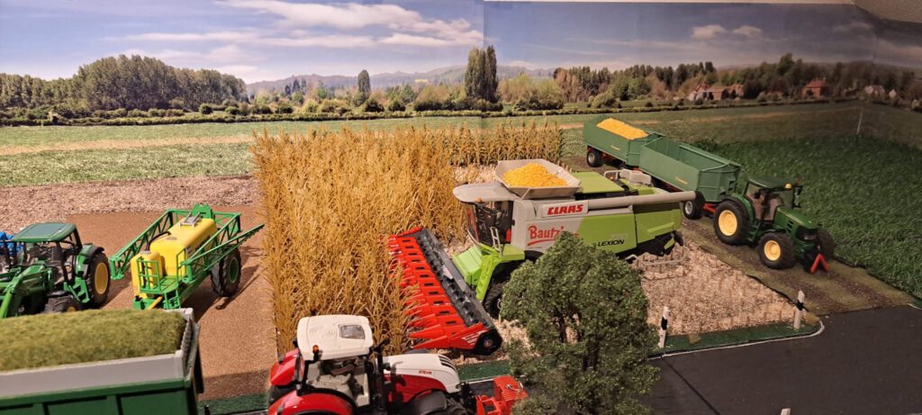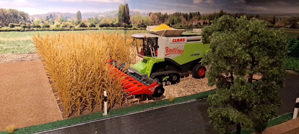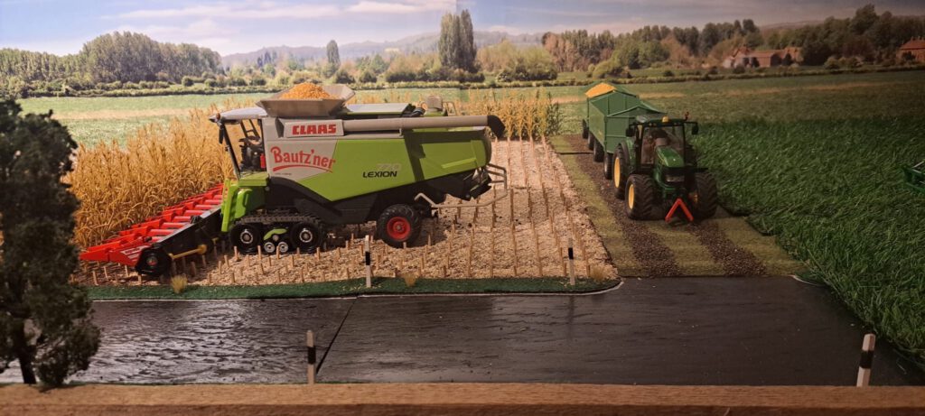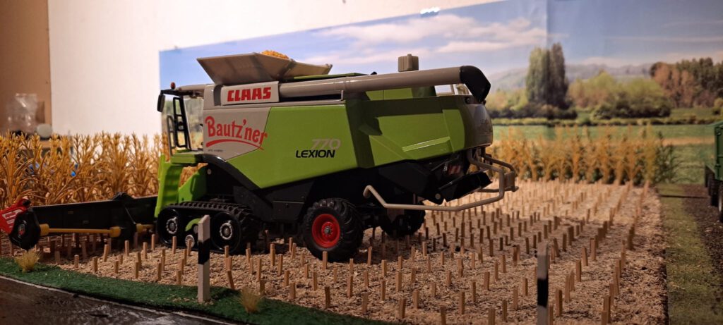 Heut gibt’s einen ganz besonderen Claas-Drescher zu sehen und zwar einen, den man so nicht alle Tage findet. Das Modell ist im Auftrag des bekannten Bautzener Senfs unterwegs, was der ganzen Sache eine klare lokale Note verpasst. Für mich persönlich ist das eine dieser Kombinationen, die sofort ins Auge springen: moderner Landtechnik-Look trifft traditionsreiches Produkt aus meiner Heimatstadt. Passt überraschend gut. Die Idee dafür kam von Danilo. Er hat nicht lange gefackelt und wusste ziemlich genau, was er wollte. Sein Plan: diesen speziellen Drescher auf seinem Diorama in Szene setzen realitätsnah, stimmig und mit einem klaren Wiedererkennungswert. Mit seinen Vorgaben, Maßen und Vorstellungen war schnell klar, wohin die Reise geht. Und so entstand Schritt für Schritt der kleine Bruder für sein Diorama, der sich optisch perfekt einfügt und trotzdem ein echtes Highlight bleibt. Das fertige Ergebnis kann sich sehen lassen. Das Modell ist sauber umgesetzt, die Details sitzen, und im Zusammenspiel mit dem Diorama wirkt alles absolut stimmig. Man merkt, dass hier nicht einfach irgendwas zusammengestellt wurde, sondern dass Konzept, Handwerk und Leidenschaft zusammengekommen sind.